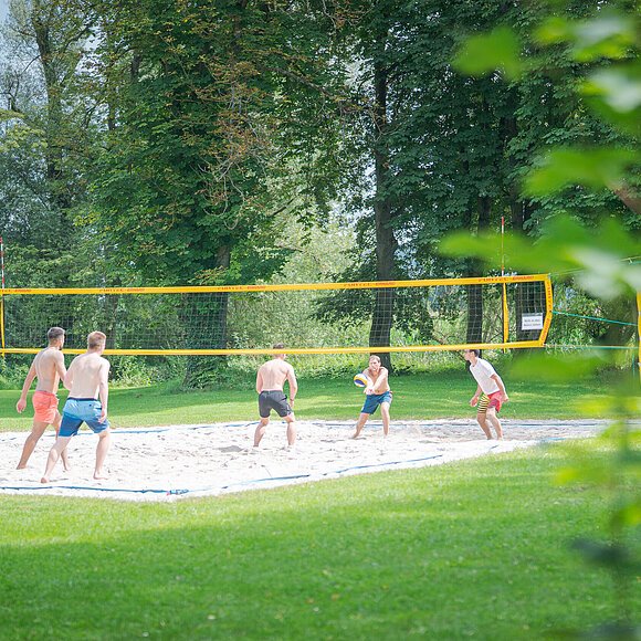 Und wenn du dich noch auspowern möchtest, schnapp dir einen Ball: Auf zwei großzügigen Beachvolleyballfeldern kannst du deinen Aufschlag üben und deine Technik perfektionieren.
