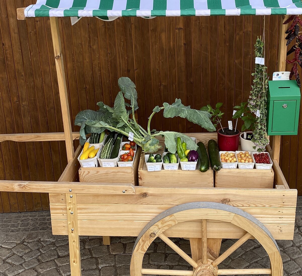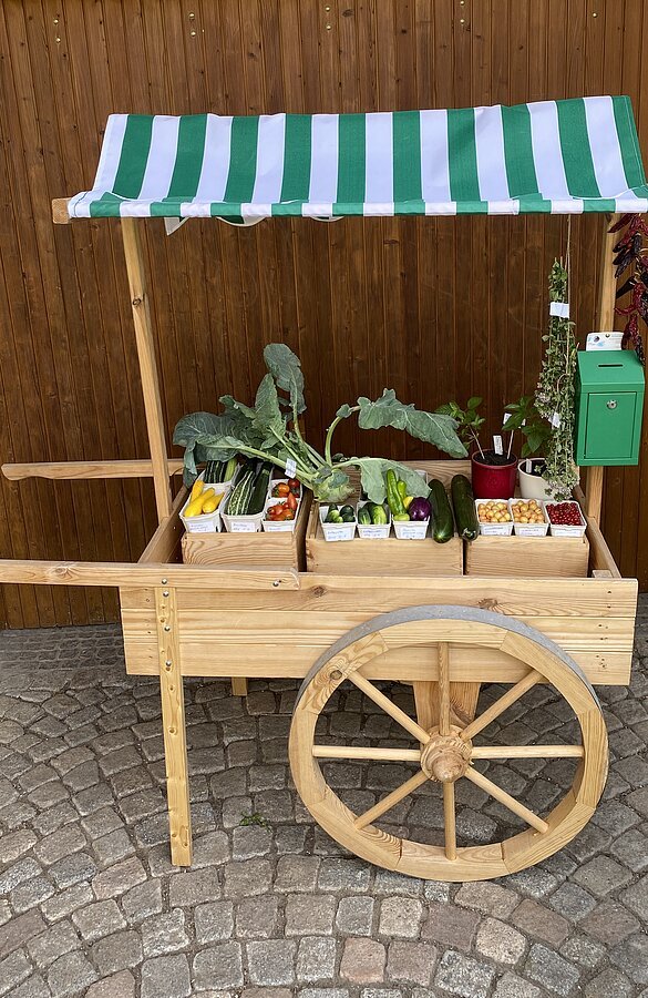Kirschen, Bohnen, Weiß- und Blaukraut und vieles mehr gibt es in ihrem Verkaufsladen zu finden. Dieser steht immer ab ca. 06:00 Uhr - 20:00 Uhr vor ihrem Haus in der Keltenstraße 9 bereit.