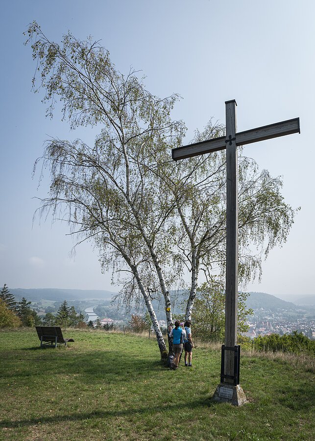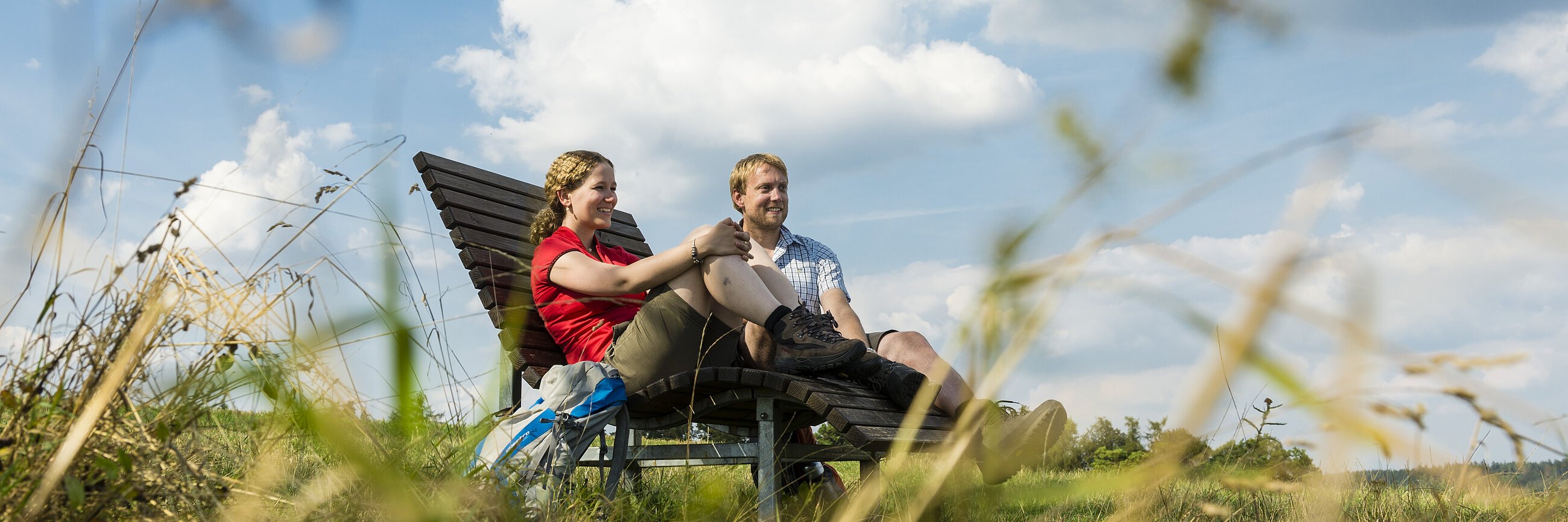 Eine Wanderliege steht am besten Punkt für Sie bereit und gibt den Blick auf Beilngries, das Schloss Hirschberg und den Arzberg mit seinem Steinbruch frei.