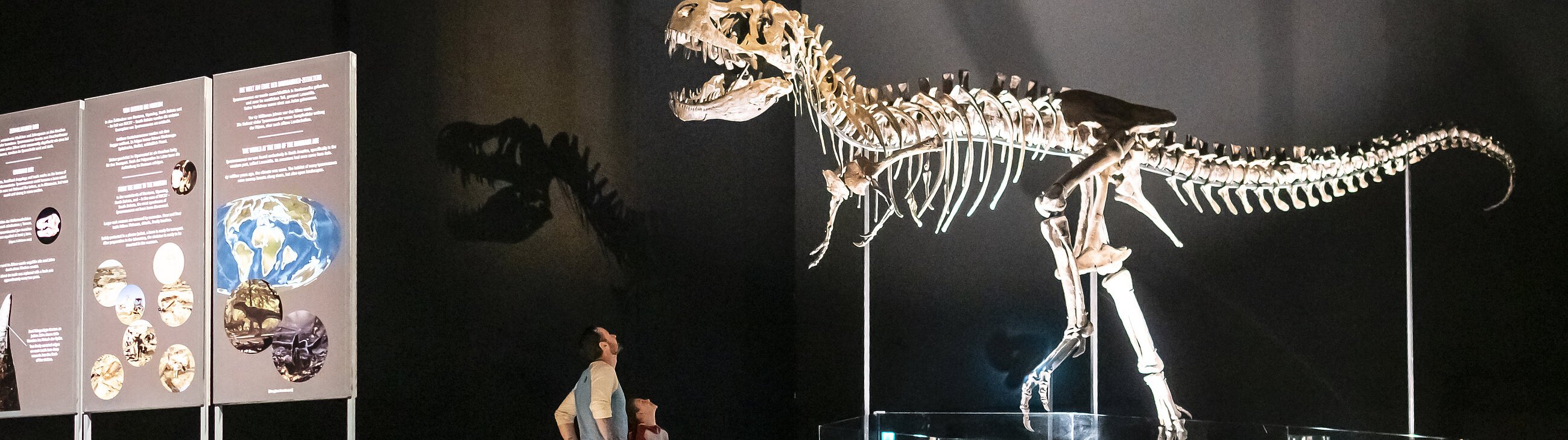 Weitere Highlights sind in der Museumshalle zu sehen. Neben original Fossilien wird das echte Skelett des T.rex „Rocky“ ausgestellt. „Rocky“ ist eine Besonderheit unter den Dinosauriern. Denn er ist der erste jemals gefundene Tyrannosaurus rex im Teenager-Alter, mit einem ungewöhnlich gut erhaltenen Skelett. Es bietet uns Erkenntnisse über die Lebensweise der Urzeitgiganten gegen Ende der Kreidezeit vor 66 Millionen Jahren. In seiner kurzen Lebenszeit hat er schon so einiges überstanden, wie furchterregende Bissspuren in seinem Skelett belegen. Eine weitere Sensation ist „Dracula“, der größte und schwerste Flugsaurier, der jemals gefunden wurde. Stehend war er so groß wie eine Giraffe und seine Flügelspannweite betrug mindestens 12 Meter. Außerdem ist im Dinosaurier Museum nicht nur der erdgeschichtlich älteste Urvogel Archaeopteryx zu sehen, sondern auch das erdgeschichtlich jüngste Exemplar, der Archaeopteryx albersdoerferi.