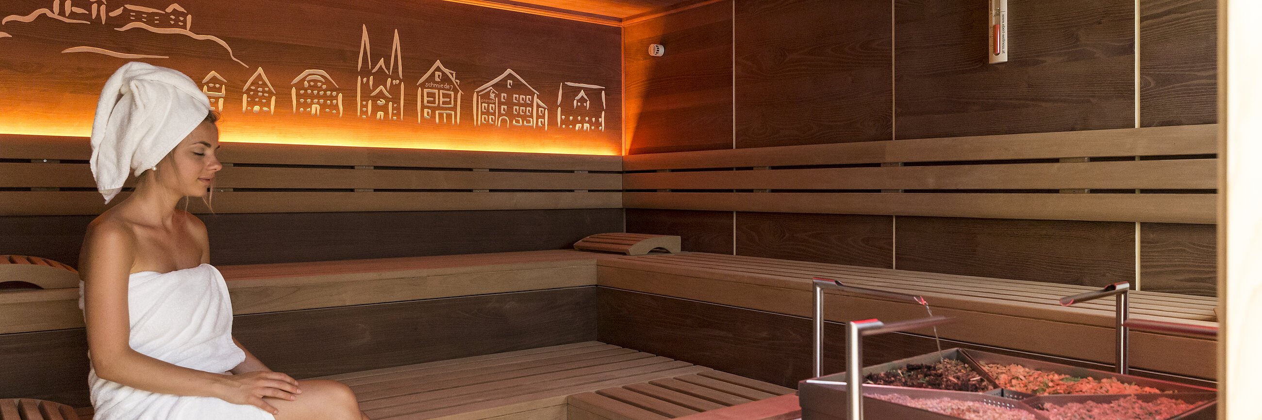 - Finnische Sauna mit verschiedenen Aromaaufgüssen