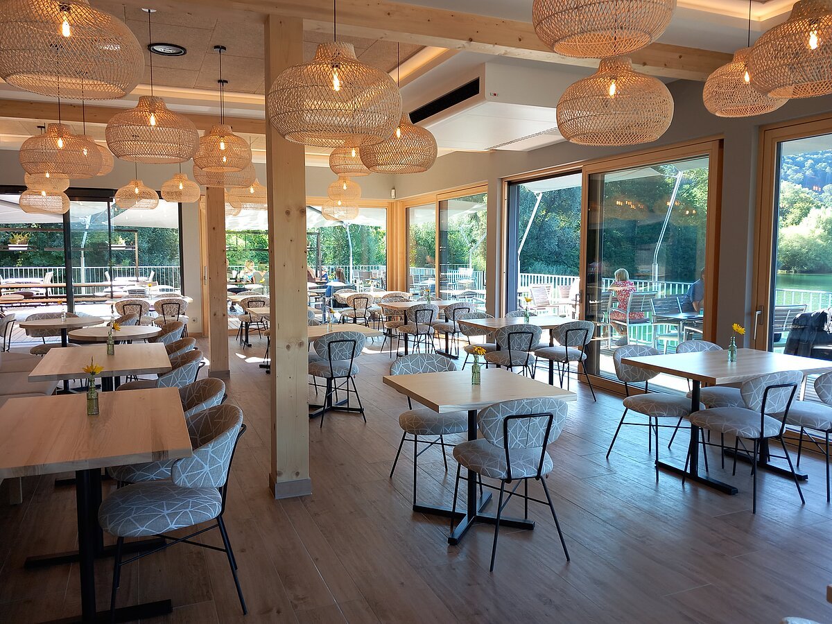 Freuen Sie sich auf eine gemütliche und moderne Seegastronomie zum Wohlfühlen. Das MEIN SEEBLICK bietet Frühstück (nur in der Sommersaison bis Oktober), Mittag- und Abendessen sowie Kaffeespezialitäten und hausgemachte Kuchen und Torten.