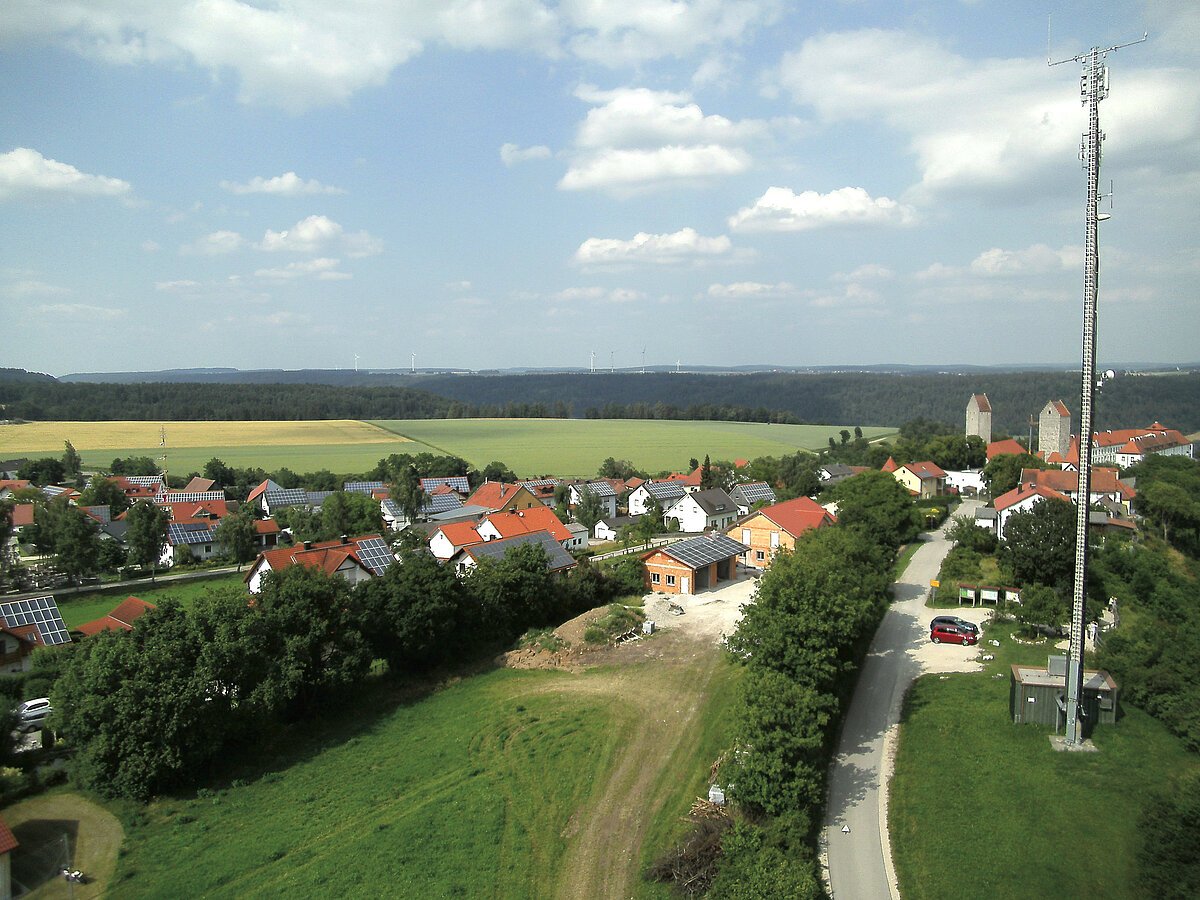 Das Dorf breitet sich westlich einer von Schloss Hirschberg beherrschten Bergzunge, dem Hirschberg, auf dem Hochplateau der Fränkischen Alb aus.