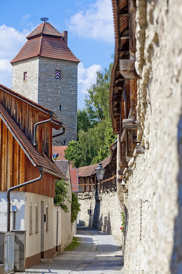 Noch heute besitzt das als Denkmalort ausgezeichnete Berching eine vollständig erhaltene Stadtmauer aus dem 15. Jh. mit 13 Türmen und vier Toren. Mit dem gemütlichen Stadtbach, den weiten Plätzen, den imposanten Bürgerhäusern und verträumte Gassen lädt Berching zu einem beschaulichen Bummel durch vergangenen Zeiten ein. Einen Spaziergang auf einem Teilstück der (öffentlich) begehbaren historischen Wehrmauer sollten Sie keinefalls versäumen! Die 13 Türme mit klangvollen Namen wie Pulverturm, Amtsknechtsturm, Frauenturm, Badturm, Bildhauerturm etc. sind alle unterschiedlich! Zum Badturm kann man auch eine kleine Geschichte über den Audio-Guide anhören.