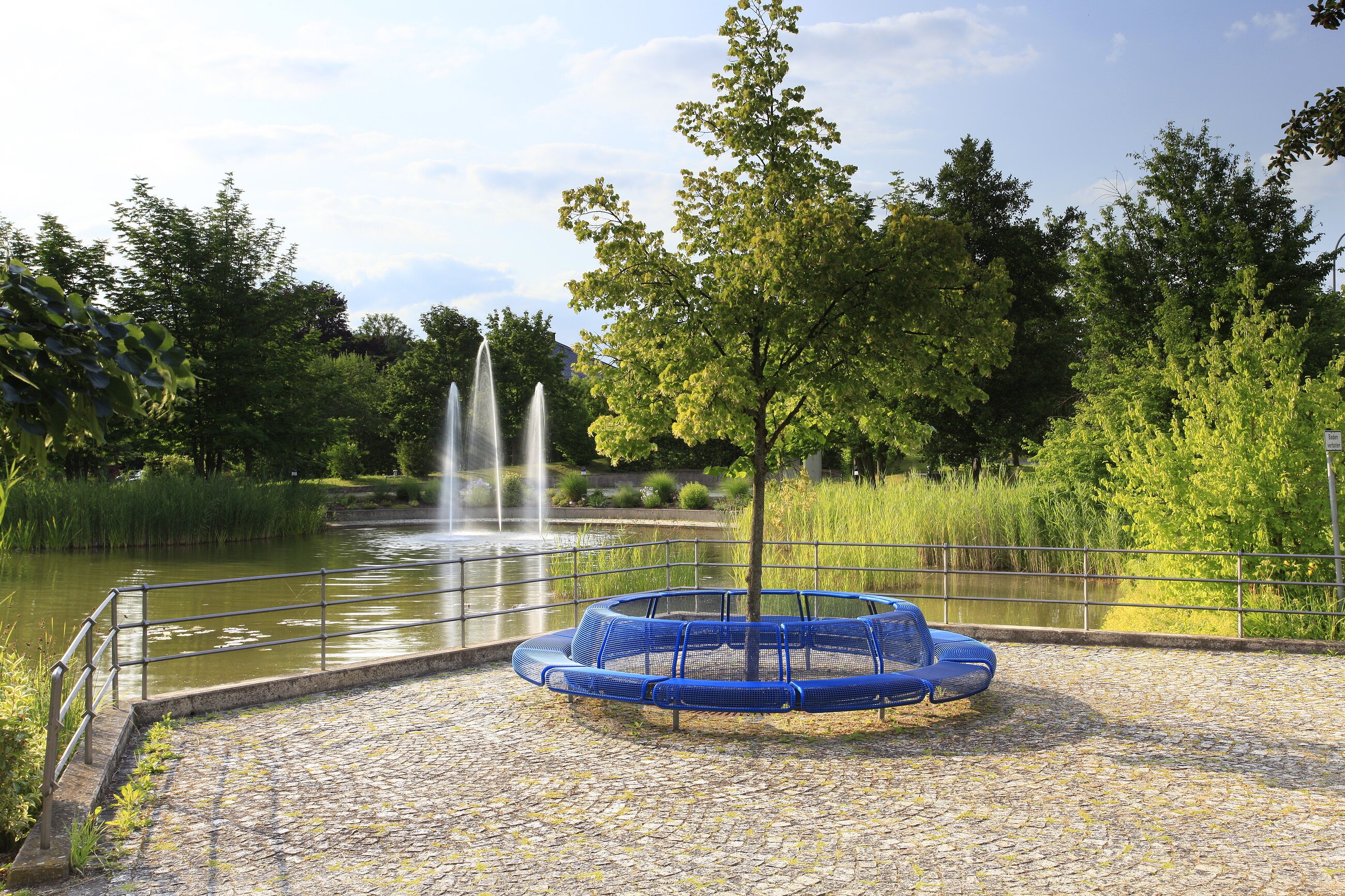 Als in den 80er Jahren mit dem Bau des Main-Donau-Kanals begonnen wurde, bedeutete dies für den Nordrand des Städtchens Beilngries eine völlige Neugestaltung. Dort, wo ehemals Züge aus Neumarkt ankamen und weiter nach Eichstätt oder Dietfurt fuhren, kreuzte plötzlich eine große Wasserstraße. Die Züge waren zu dieser Zeit freilich längst verschwunden. Was blieb, war der „Alte Bahnhof“, heute von der Familie Gallus gastronomisch genutzt, und viel freie Fläche, auf der sich früher Gleisanlagen und Lagerhallen befanden.Gedacht als Bindeglied zwischen Altstadt und Main-Donau-Kanal entstand eine kleine Parkanlage mit einem größeren Teich, in dem schon von weitem ein Wasserspiel grüßt, einem alten Bestand an Erlen und Kastanienbäumen sowie einem kleinem Musikpavillon.