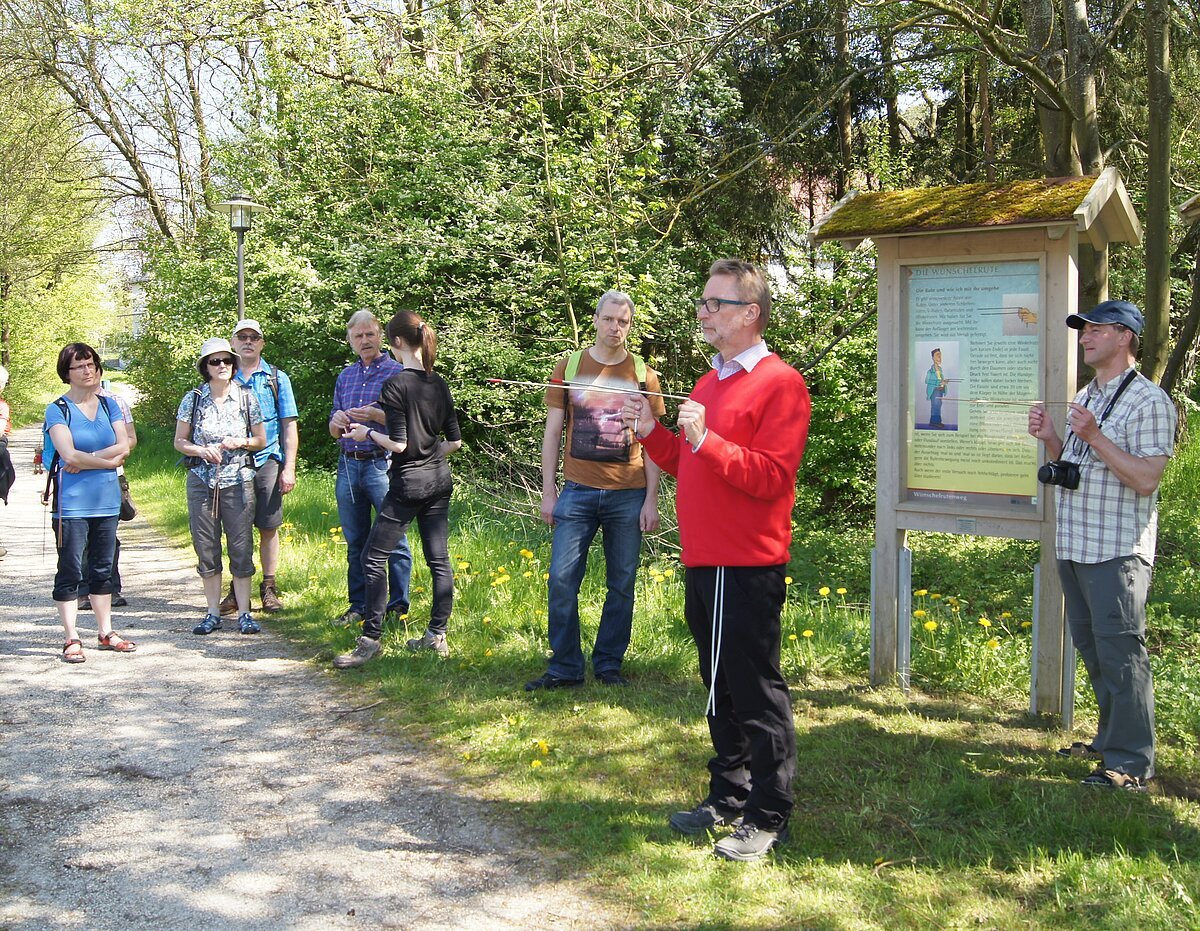 Die Wünschelrute - altes Wissen neu entdecken. Die unseren Großeltern noch wohl vertrauten, dann in Vergessenheit geratenen Wünschelruten, sind heute wieder ganz aktuell. "Radiästhesie" nennt man die uralte Wissenschaft um die Wirkung von Erdstrahlen. Auf dem ca. 6 km langen Rundweg mit Erklärungstafeln über Wasseradern, Verwerfungen und Gitternetzzonen testen Sie unter Leitung eines versierten Führers ob Sie als Medium geeignet sind.