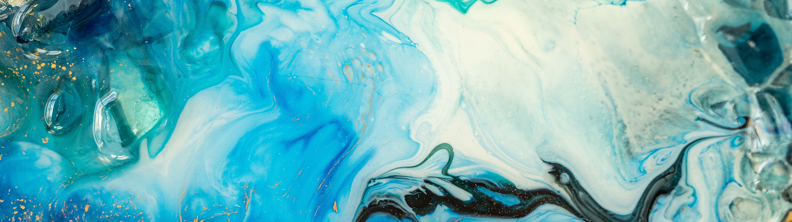 Die Resin Kunst ist eine Technik aus dem Bereich des Fluid Painting, also der flüssigen Kunst. Neben Acrylic Pouring und Alcohol Ink ist Resin Art die dritte Gießtechnik im Bunde. Und zwar eine ganz besondere: Mit keinem anderen Material bekommt man dieselbe Leuchtkraft und Klarheit wie mit Epoxidharz. Das Resin trocknet glasklar aus und glänzt stark.