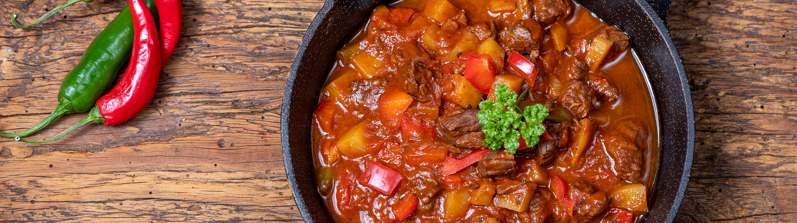Gulasch all’italiana – zartes Kalb-, Rind- und Lammfleisch geschmort in einer würzigen Sauce nach italienischer Art.