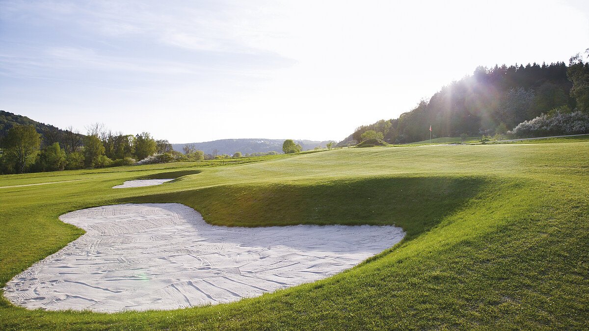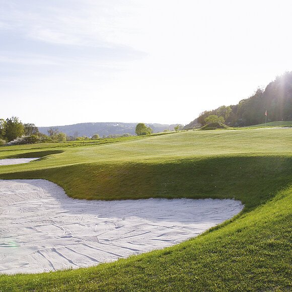 Naturbelassene Fairways, abwechslungsreiche, leicht hügelige Spielbahnen sind für Golfer in jeder Spielstärke interessant. Sportlich anspruchsvolles Spiel oder rundum entspannendes Golferlebnis – auf dieser Anlage stehen Ihnen alle Möglichkeiten offen. Unser Signature Hole, die Bahn 9, Par 4, ist mir ihrem erhöhten Abschlag und nicht einsehbarem Inselgrün, eine besondere Herausforderung für jeden Golfer.