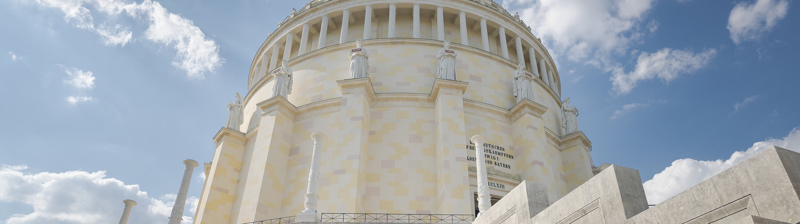 Den steilen Anstieg zur Befreiungshalle bewältigt man am besten bequem mit der Ludwigsbahn. Regelmäßig startet der weiß-blaue Minizug an der Schiffsanlegestelle Donau. So gelangt man nicht nur mühelos auf den Berg und genießt die Aussicht auf die Stadt, sondern erfährt unterwegs auch viel Wissenswertes.