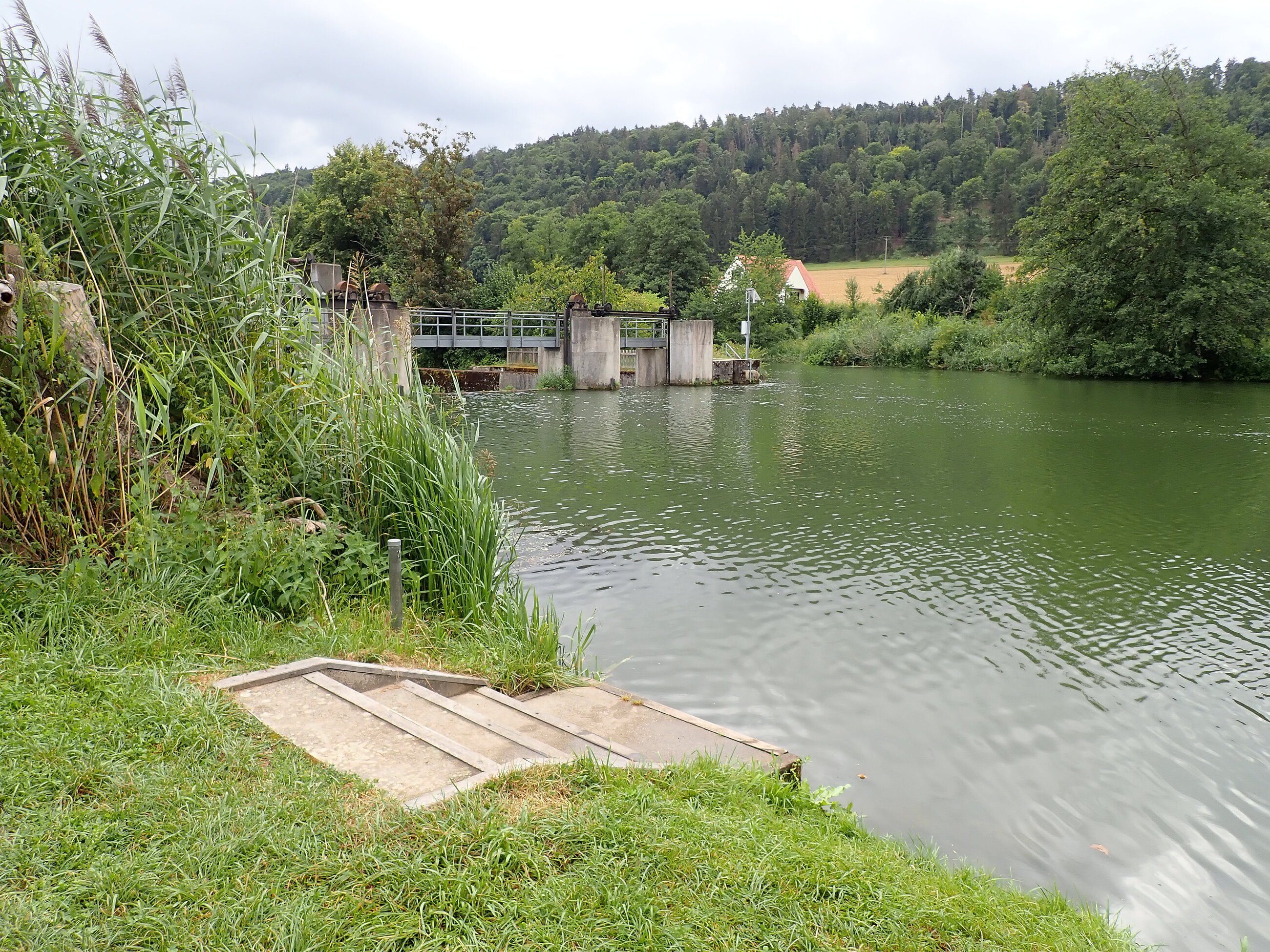 Das Wehr bei Flusskilometer 37,8 an der Mühle mit Ausstieg auf der linken Seite.