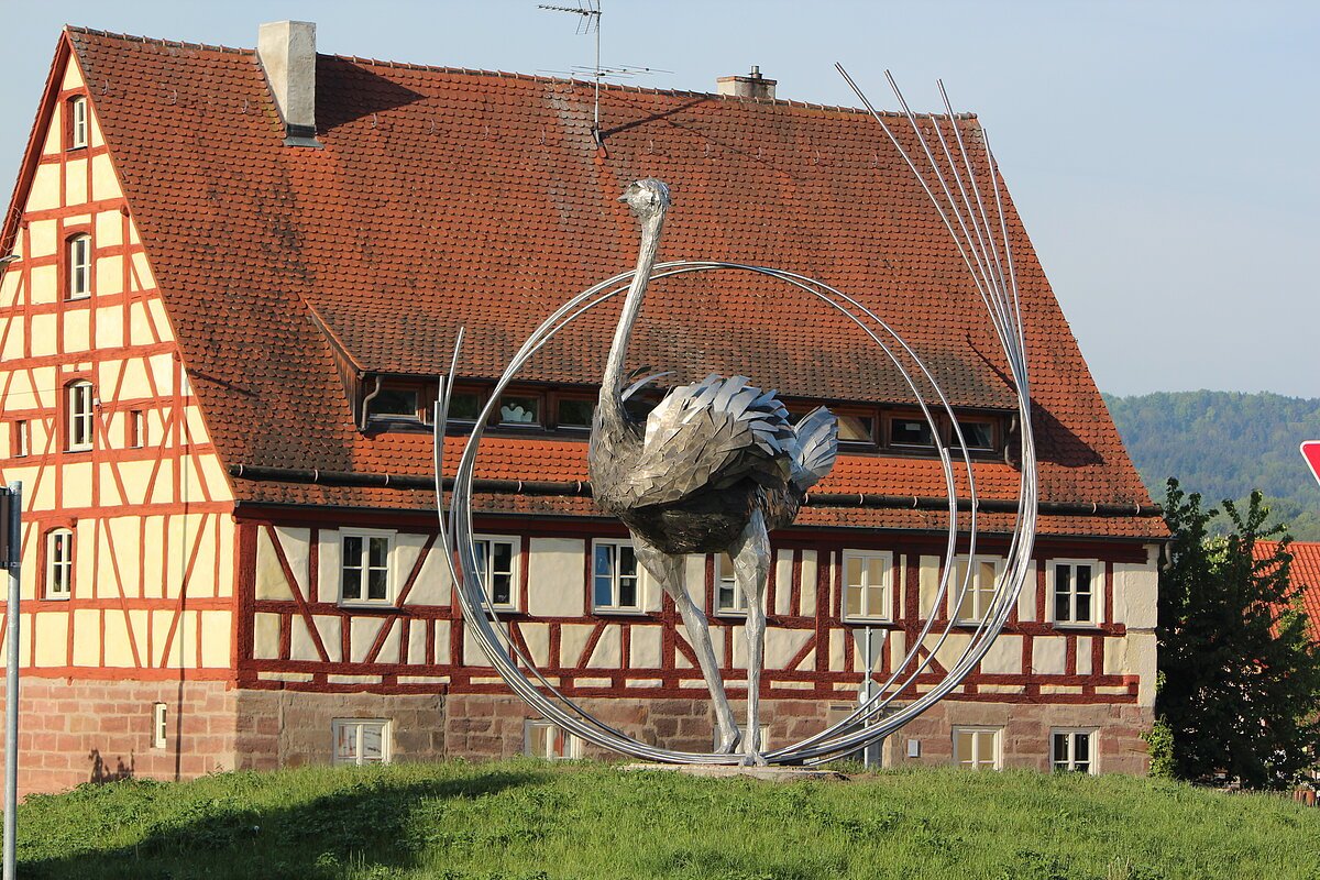 Von Spalt aus geht es über Wasserzell nach Sauersbruck am Flußufer der Rezat entlang. In Georgensgmünd queren die Radler die Rezat. Bald tauchen Figuren aus Holz, Stein und Eisen neben dem Radweg auf. Sie sind Teil des Gmünder Skulpturenweg. Dem Verlauf der Rednitz folgend fährt man nun nach Roth.